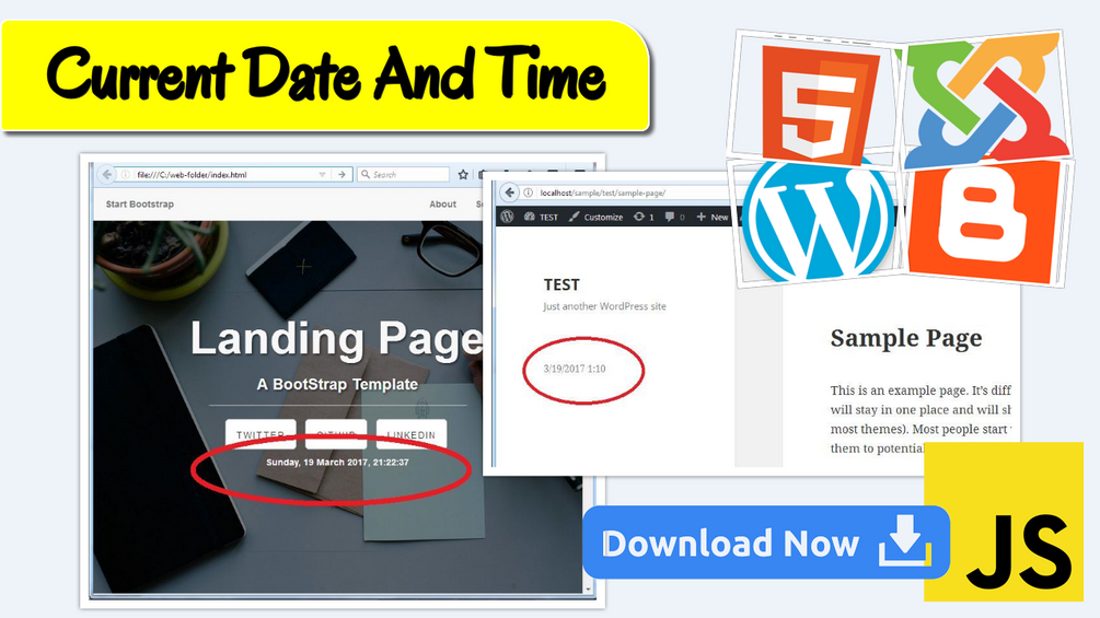 "Current Date and Time" Code for WordPress, Joomla, Blogger, HTML5